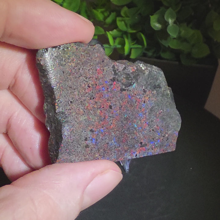**Note** Photos and Video shown are of a WET Andamooka Matrix Opal Slab Slice - they will not look this way when dry. No need to keep them wet. While the matrix is natural, these should be considered as sugar treated, which turns the matrix black and brings out the color of the Opal. This is common/accepted for this material