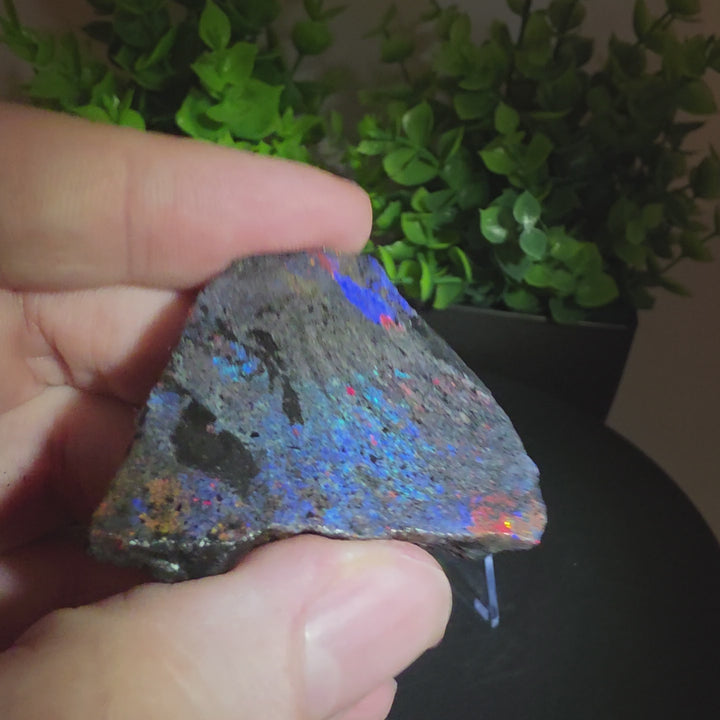 **Note** Photos and Video shown are of a WET Andamooka Matrix Opal Slab Slice - they will not look this way when dry. No need to keep them wet. While the matrix is natural, these should be considered as sugar treated, which turns the matrix black and brings out the color of the Opal. This is common/accepted for this material