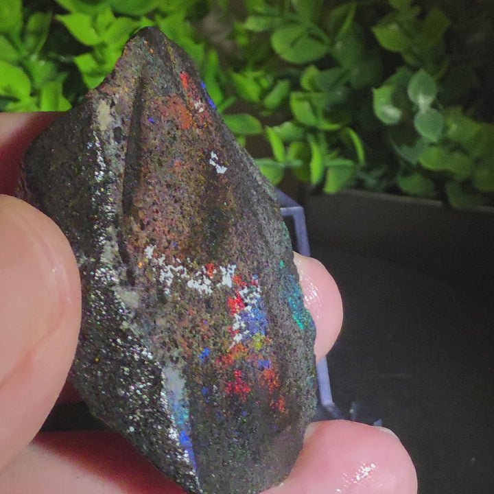 **Note** Photos and Video shown are of a WET Andamooka Matrix Opal Slab Slice - they will not look this way when dry. No need to keep them wet. While the matrix is natural, these should be considered as sugar treated, which turns the matrix black and brings out the color of the Opal. This is common/accepted for this material