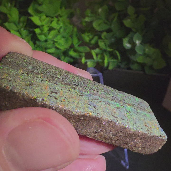 **Note** Photos and Video shown are of a WET Andamooka Matrix Opal Slab Slice - they will not look this way when dry. No need to keep them wet. While the matrix is natural, these should be considered as sugar treated, which turns the matrix black and brings out the color of the Opal. This is common/accepted for this material