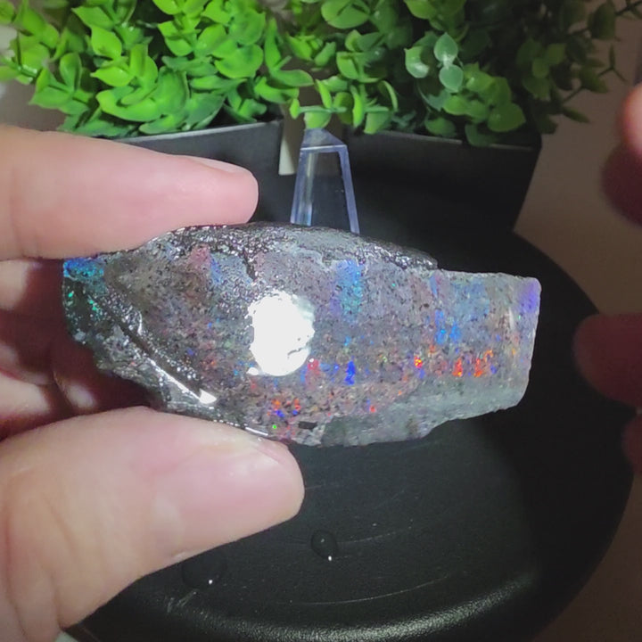 **Note** Photos and Video shown are of a WET Andamooka Matrix Opal Slab Slice - they will not look this way when dry. No need to keep them wet. While the matrix is natural, these should be considered as sugar treated, which turns the matrix black and brings out the color of the Opal. This is common/accepted for this material