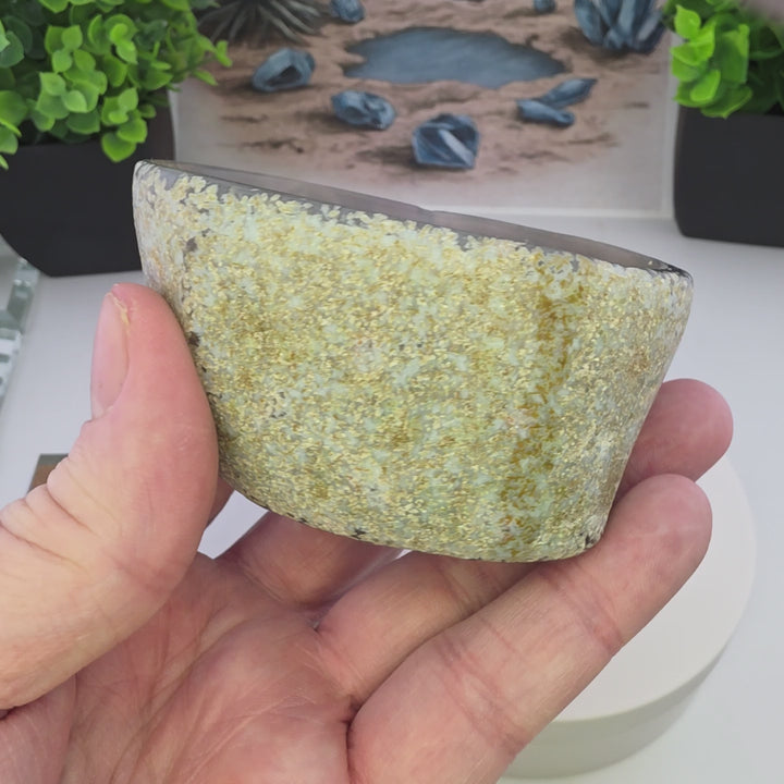 Perfect for holding small treasures, jewelry, or simply as a striking display piece. Though the exact locality is unknown, the mineral's beautiful layering speaks to its ancient origins. This is an earthy, tactile piece that brings grounding beauty to any space.
