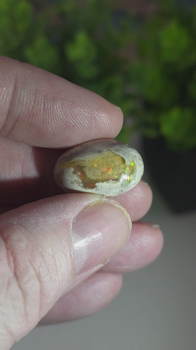 Sourced from the famous mining regions of Jalisco, specifically around Magdalena, these stones are a result of intense geological history. Millions of years ago, silica-rich fluids filled the gas bubbles (vesicles) within cooling lava. Over time, that silica solidified into the opal we see today. What I really love about these pieces is the texture; you have the matte, earthy, and porous rhyolite protecting a glassy, translucent center. When the light hits the opal "seed," you can see deep into the stone, often revealing flashes of color or a "jelly-like" clarity that is typical of Mexican localities.