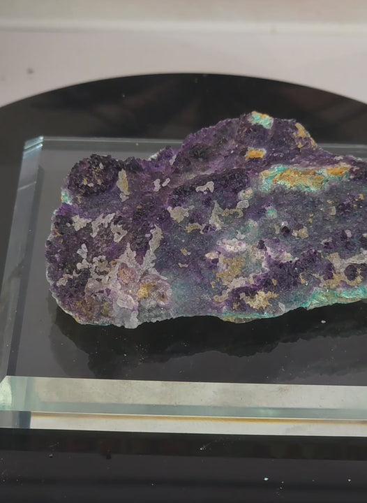 Panda Fluorite is a highly distinctive of fluorite found specifically at the Mina Ojuela (Ojuela Mine) in Mapimí, Durango, Mexico. These particular specimens have Fluorite and the potential mix of Rosasite and/or Aragonite. This particular lot does not UV extremely well due to the presence of Rosasite, but they are beautiful specimens!