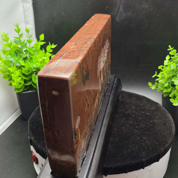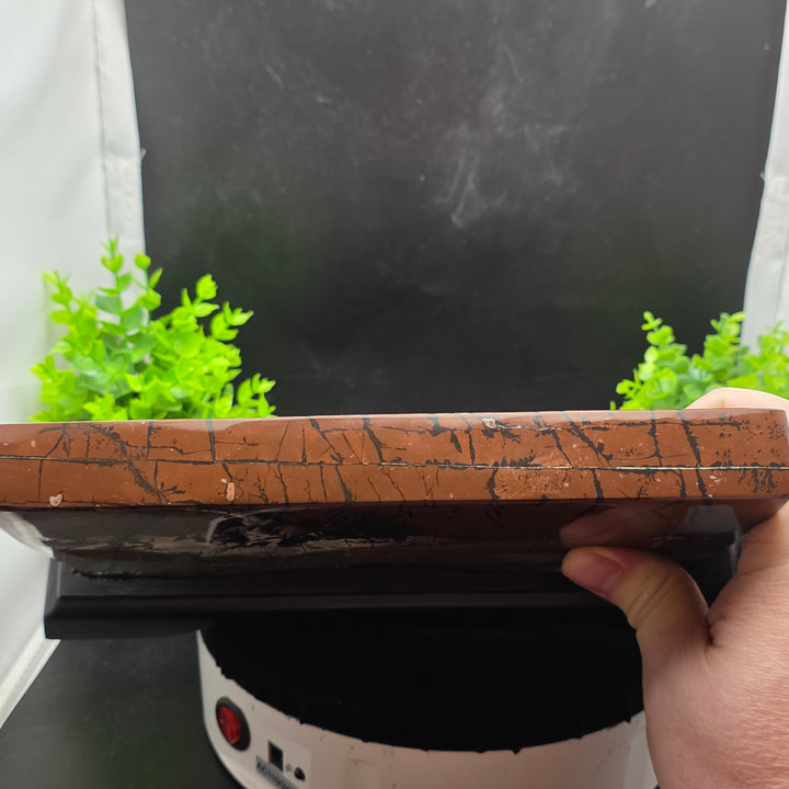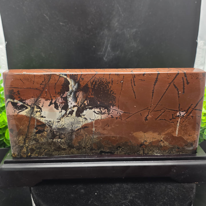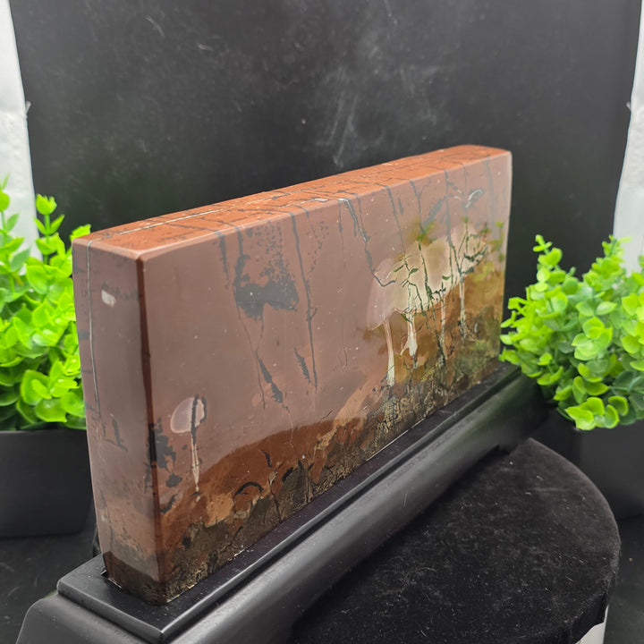 Enhance your décor with the Picture Jasper Rectangle Crystal Display with Stand, featuring a beautifully polished jasper stone shaped into a perfect rectangle. This display comes with a sturdy stand, designed to hold the crystal securely while showcasing its unique natural patterns. Its smooth finish and earthy tones add a touch of natural elegance to any room, making it a striking focal point for desks, shelves, or display cabinets. Perfect for those who appreciate natural beauty and quality craftsmanship, this crystal display combines artistic appeal with functional design to brighten your space.