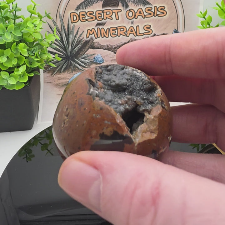 Check out this fantastic Red Fox Agate Sphere! It’s a beautifully polished stone ball with various cavities This type of agate is known for having these gorgeous, warm colors—deep reds, rusts, and oranges—that remind you of a fiery red fox. If you're looking for something unique to decorate your living room or office, this is a great choice.