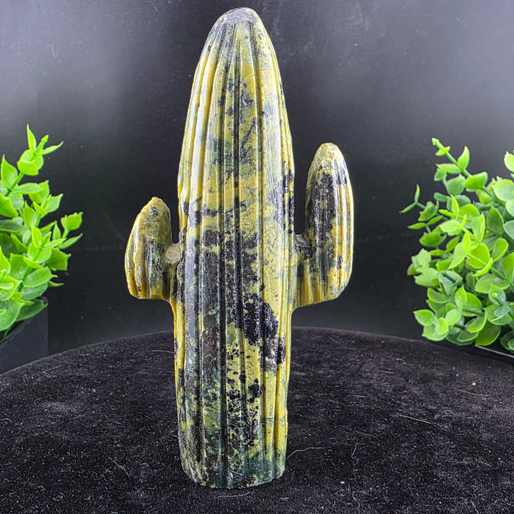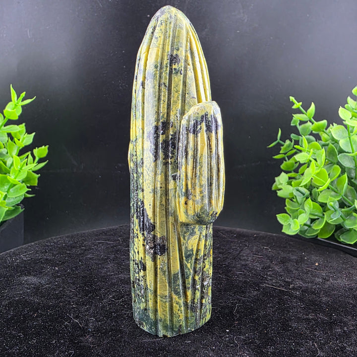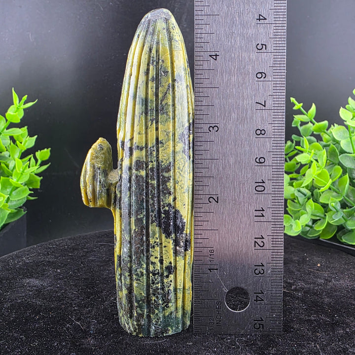 Bring home a Saguaro Cactus Carving from Peru that will never need watering! This fun-loving Saguaro is carved from greens/yellow/black mixed serpentine stone from Peru, giving it a satisfying weight and a smooth finish. It's a nice southwestern flair to any space. The perfect pop of personality for your desk or bookshelf.