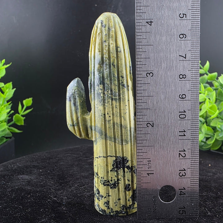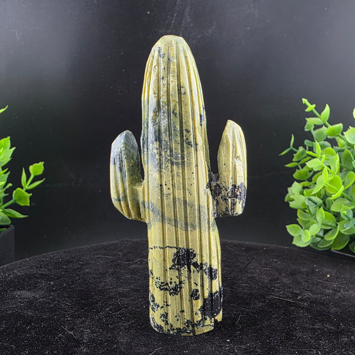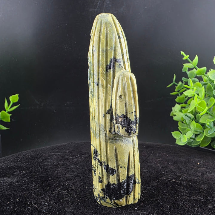 Bring home a Saguaro Cactus Carving from Peru that will never need watering! This fun-loving Saguaro is carved from greens/yellow/black mixed serpentine stone from Peru, giving it a satisfying weight and a smooth finish. It's a nice southwestern flair to any space. The perfect pop of personality for your desk or bookshelf.