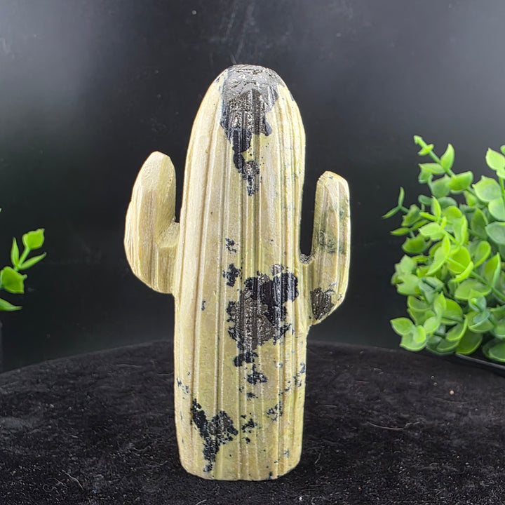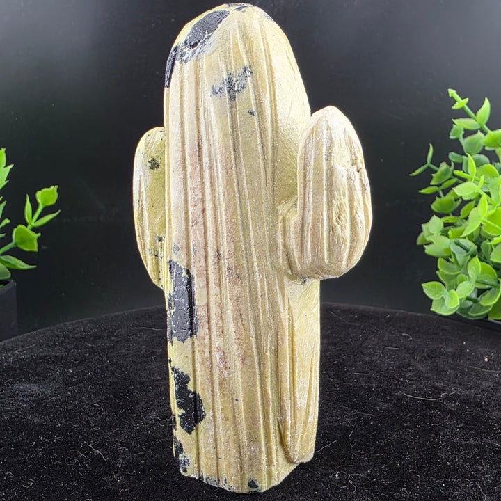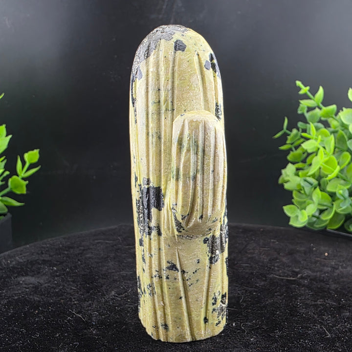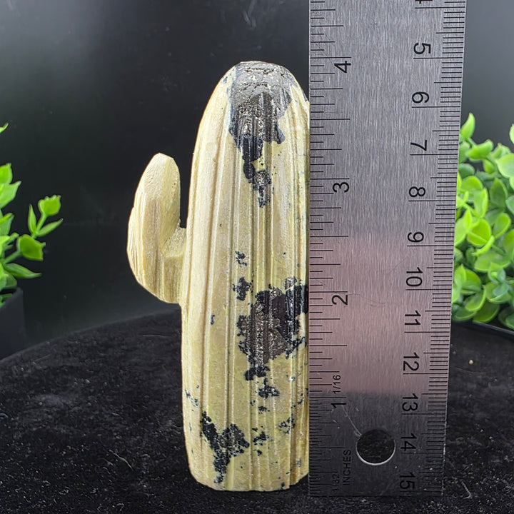 Bring home a Saguaro Cactus Carving from Peru that will never need watering! This fun-loving Saguaro is carved from greens/yellow/black mixed serpentine stone from Peru, giving it a satisfying weight and a smooth finish. It's a nice southwestern flair to any space. The perfect pop of personality for your desk or bookshelf.