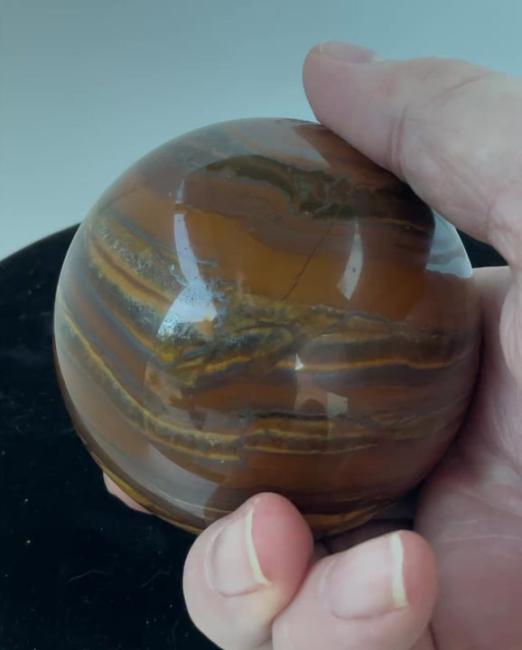 This Tiger Iron Polished Sphere Ball is crafted from Tiger Iron, an attractive and ancient composite rock that is highly prized for its vibrant, layered structure. Be sure to check out the video and the pictures to get a true feel for what this sphere looks like.